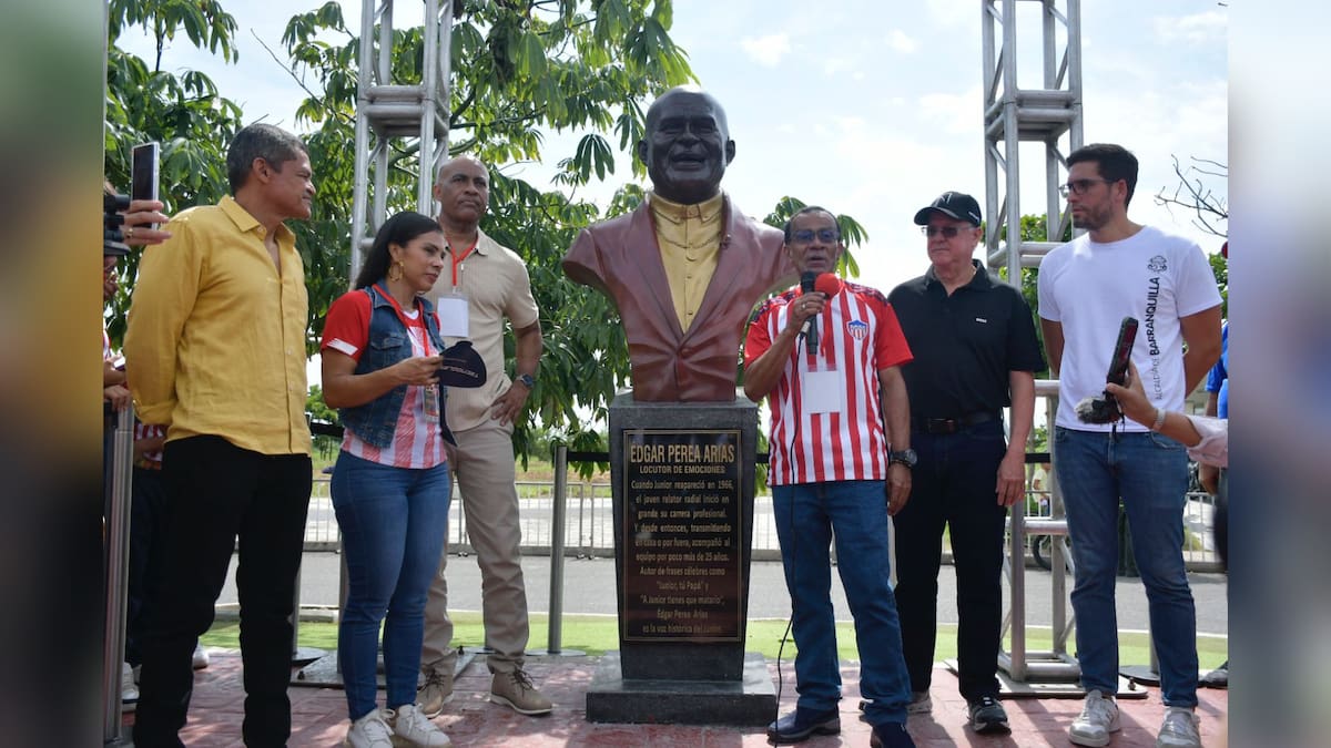 En la mañana de este miércoles 7 de agosto, en medio de la celebración del centenario del Junior de Barranquilla, se llevó a cabo la develación de un monumento en homenaje a Édgar Perea, el inolvidable locutor deportivo que se convirtió en un ícono del equipo rojiblanco.
