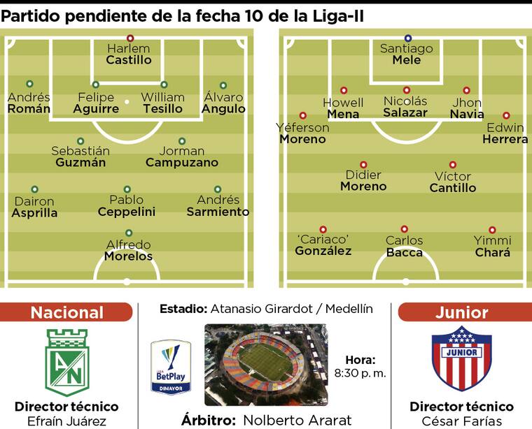 Se acabaron los tropezones. Hoy hay que ganar. Junior, que viene de perder 4-3 ante Águilas Doradas en el estadio Metropolitano, visitará a Atlético Nacional a partir de las 8.30 p.m., en el Atanasio Girardot, por un juego aplazado de la fecha 10 de la Liga-II.