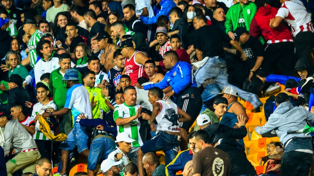 Fanáticos del equipo rojiblanco tuvieron que correr hasta el terreno de juego para resguardarse de lo que fue una verdadera batalla campal que se desató en suelo antioqueño.