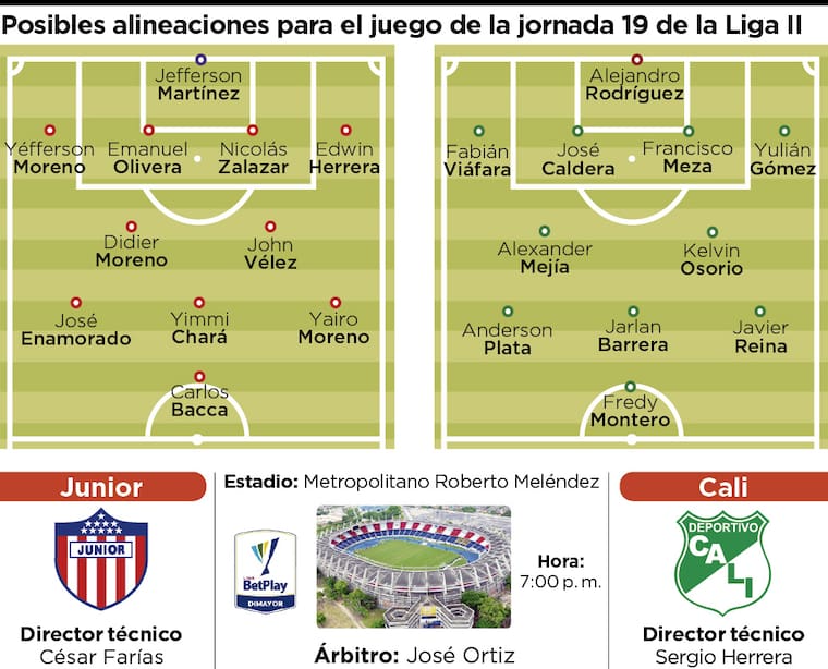 En el mediocampo, Jhon Vélez regresaría en lugar del magdalenense Víctor Cantillo, quien tuvo un buen juego frente al ‘Blanco Blanco’. Didier Moreno se mantendrá en esa primera línea de volantes.