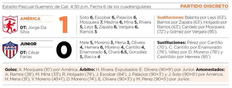 Pasó lo mismo que el semestre pasado. Se le dio el resultado que necesitaba en la otra plaza, pero no hizo su tarea. Junior sucumbió 1-0 ante un América eliminado y desperdició una buena posibilidad de avanzar a la final de la Liga II.