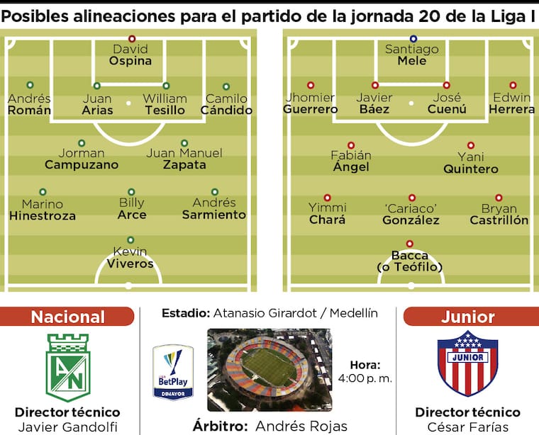 El conjunto paisa, que mira de reojo el partido de Copa Libertadores ante Nacional de Uruguay, el miércoles en la Copa Libertadores, jugará contra Junior con una nómina estelar, en la que solo están ausentes Matheus Uribe (por decisión técnica) y Edwin Cardona (por expulsión).
