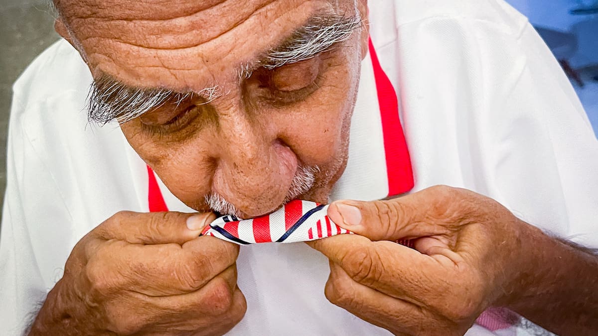Levemente se golpea varias el pecho y expresa a boca llena: “Yo he estado en todos los títulos de Junior, no me he perdido ni uno”. Su rostro es tan familiar como entrañable en el mundo rojiblanco. El orgulloso fanático es uno que quizá el resto de aficionados conocen de vista, aparece en afiches, en videos de días gloriosos y en cualquier escena de un partido del ‘Tiburón’ en el interior del país, pero pocos saben a fondo su historia. Al menos no las nuevas generaciones de hinchas.