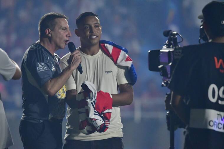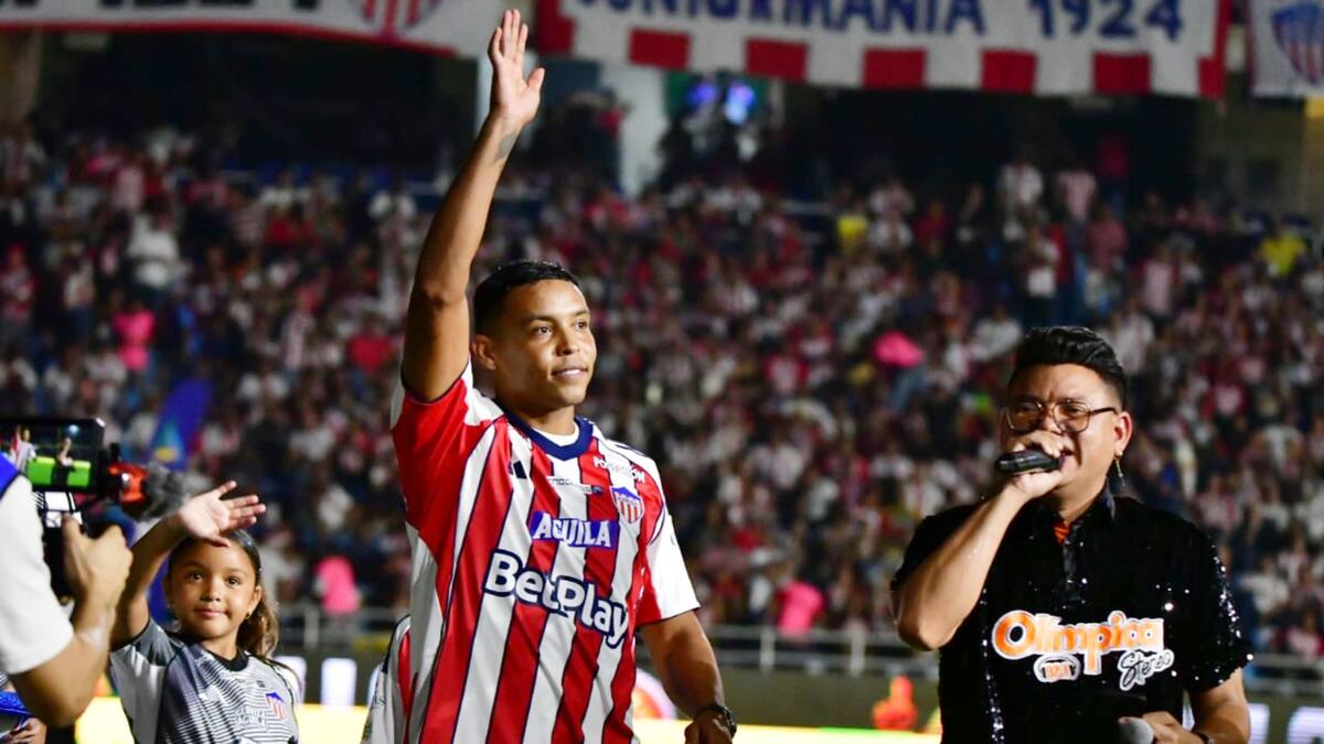 El carismático forastero, con una casaca de Junior puesta, invitó a los seguidores junioristas a pensar en conquistar la Copa Libertadores, algo que la gente en el estadio respondió con una ovación.