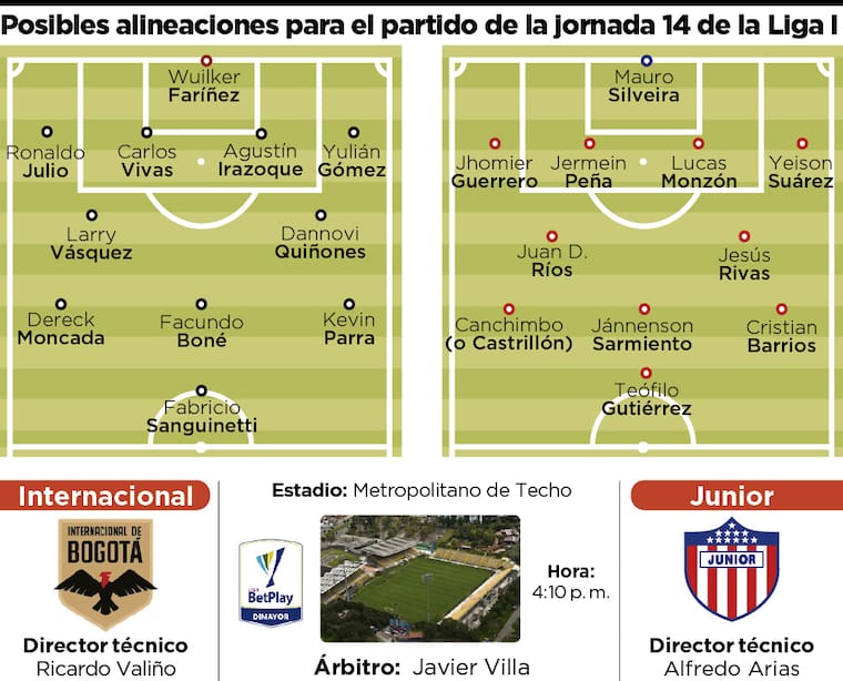 Este domingo, a partir de las 4:10 p.m., Junior se enfrentará al Inter, en el estadio Metropolitano de Techo, en un duelo inédito en la historia del fútbol colombiano, en la jornada 13 de la competencia doméstica.