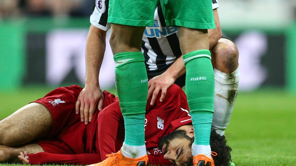 Salah se lesionó el pasado sábado, en el minuto 73 del encuentro contra el Newcastle, cuando sufrió un golpe en la cabeza en un choque con el meta eslovaco Martin Dubravka, que le obligó a abandonar el terreno de juego en camilla.