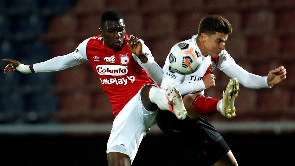 Sin embargo, el club colombiano estuvo cerca de aprovecharse de las imprecisiones ofensivas del club argentino y en un contragolpe el lateral Fabio Delgado quedó mano a mano con Franco Armani, que aguantó, leyó bien la jugada y evitó la celebración de los bogotanos.