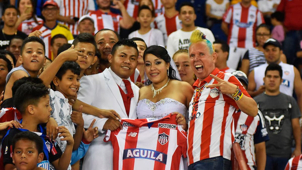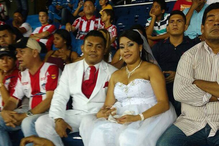 Kevin Torres y Julieth Jiménez son tan junioristas que este sábado, una hora y media después de contraer matrimonio en la iglesia San Pablo, del barrio La Paz, asistieron, con todo y vestimenta de nupcias, a la tribuna oriental del estadio metropolitano Roberto Meléndez para observar el partido entre el cuadro rojiblanco y Cortuluá, en la undécima fecha de la Liga Águila I.