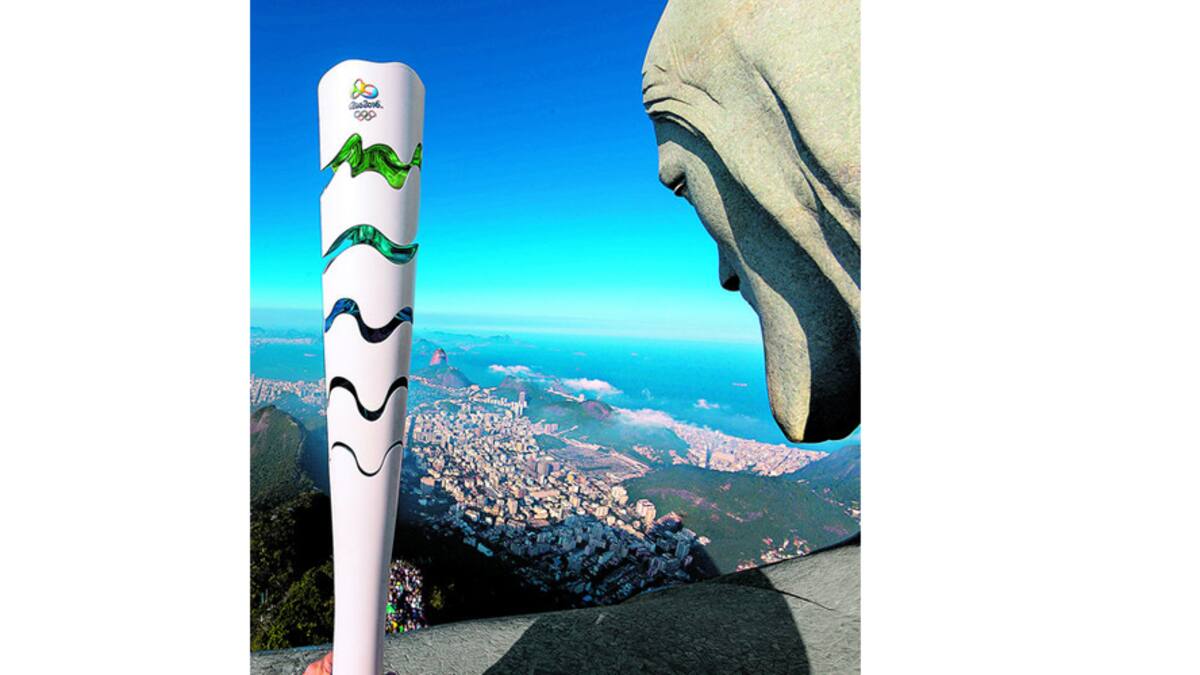 La antorcha olímpica de los Juegos de Río de Janeiro se caracteriza por ser una estructura dinámica, que cambia de forma y de tonalidad, con sinuosas marcas grabadas con los tan brasileños colores verde y amarillo sobre un fondo blanco.