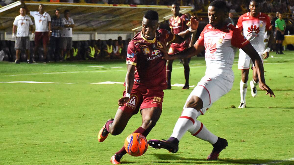 Deportes Tolima y Santa Fe protagonizaron anoche un discreto partido en el juego de ida de la final de la Liga Águila II-2016, que culminó con empate 0-0, en el estadio Manuel Murillo Toro de Ibagué.
