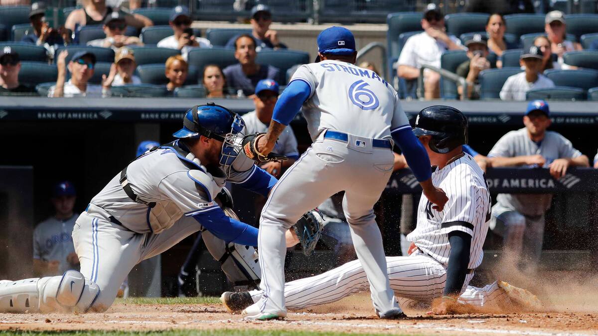 La jugada de la anotación del cartagenero fue tan vistosa como polémica. Urshela se barrió al plato y, con un gran movimiento de cintura, evitó que el receptor Danny Jansen lo desairara. El umpire principal no lo vio así y decretó out, una decisión que fue recriminada en la cueva local.