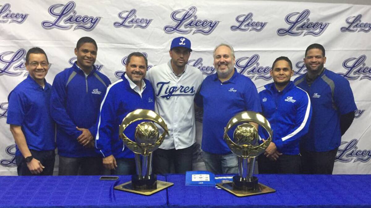 Urueta recibió la casaca y la gorra de los Tigres de manos del gerente general, Junior Noboa, y del vicepresidente, Ricardo Ravelo.