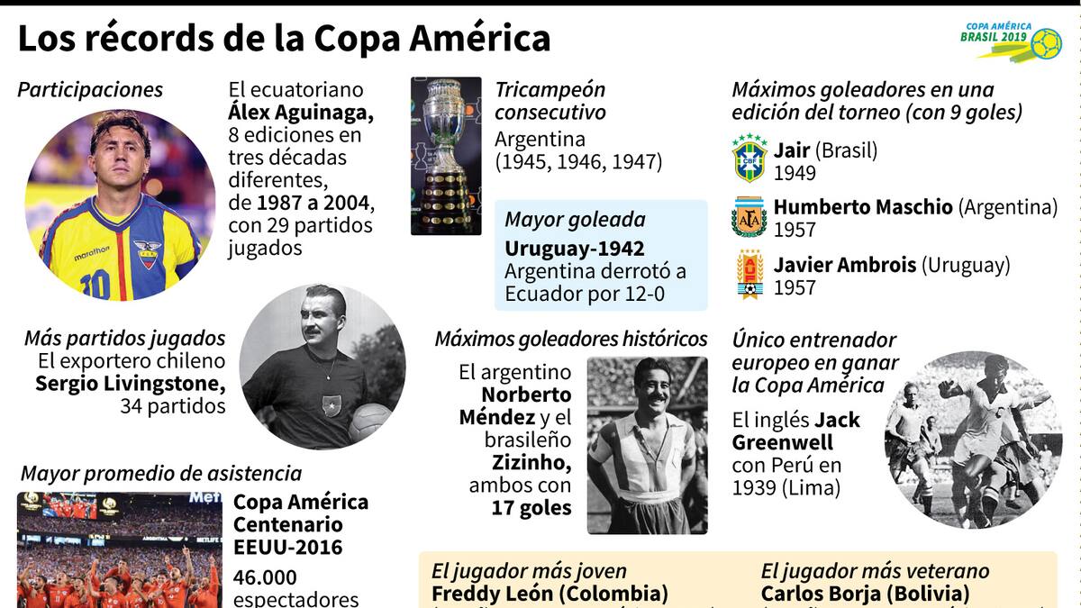 La Copa América es el torneo de selecciones que más ediciones ha celebrado y la de este año en Brasil será la cuadragésima sexta en 103 años, una centenaria historia donde los mejores equipos y jugadores del continente han dejado su huella con singulares récords.