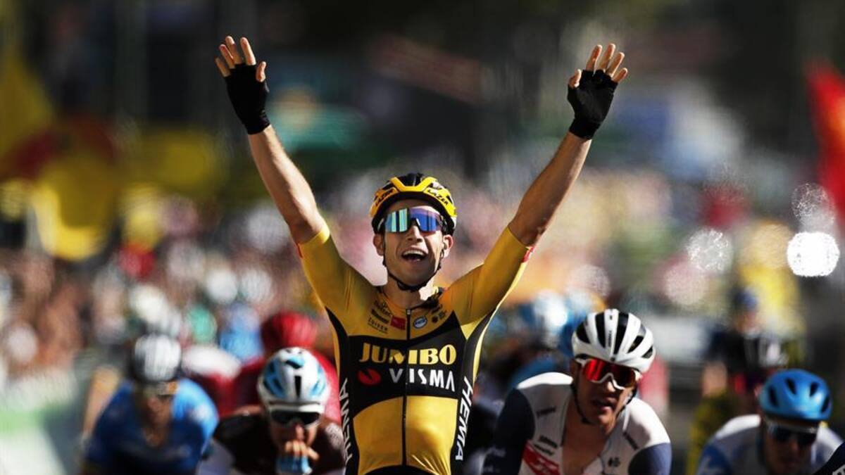 La tercera victoria del Jumbo y tercera de Van Aert en el Tour se concretó en un tiempo de 3h.32.03, a una velocidad media supersónica de 47 km/h. Superó al noruego Boasson Hagen (NTT) y al francés Coquard (Vital Concept). Cortados por un abanico propiciado por el Ineos a 35 de meta llegaron Mikel Landa y Pogacar.