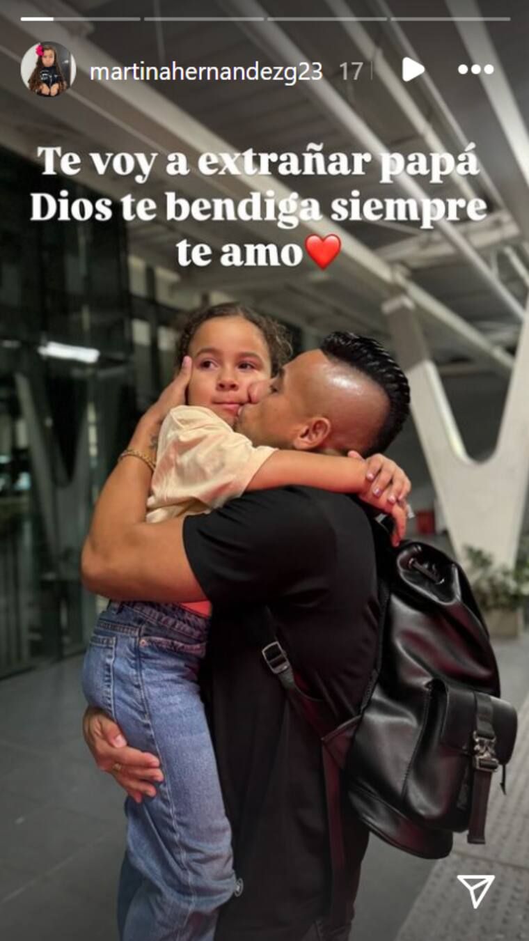 Asimismo, en la cuenta de Instagram del futbolista aparece como despidiéndose de su pequeña hija Martina, dándole un beso en el cachete, y un maletín en la espalda.