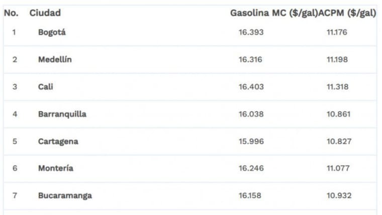 Según la tabla publicada por la Comisión de Regulación de Energía y Gas (CREG), Pasto es la ciudad con el menor costo en el precio de la gasolina, con un valor de $14.150; y Cúcuta la ciudad con el valor del diésel más bajo, ubicándose en $8.932.