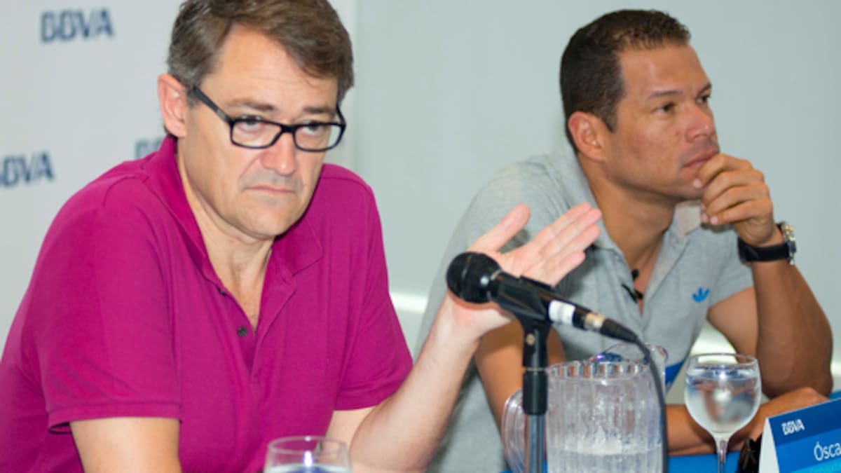 Cabrera estuvo acompañado en la conferencia de prensa de presentación de las inversiones en responsabilidad social, del exjugador de la Selección Colombia y del Boca Jrs. Óscar Córdoba, quien es imagen del banco en Colombia.