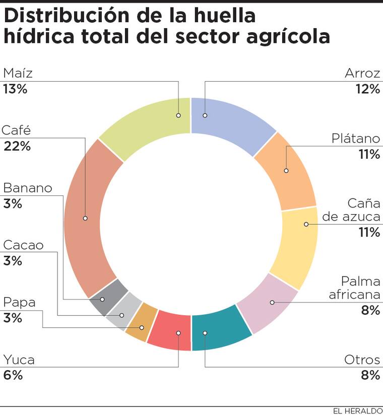 Según la Organización de las Naciones Unidas para la Alimentación y la Agricultura (FAO), la extracción hídrica en Colombia es superior a los 11.767 km3, de los cuales más del 50% del total se deriva del sector agrícola. Este es el sector que más agua consume en el país frente a otros como el de energía, doméstico, acuícola, pecuario, industrial y servicios.