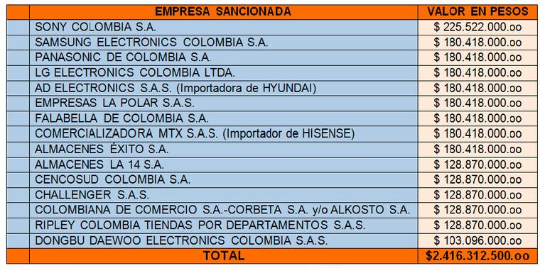 La Dirección de Investigaciones de Protección al Consumidor de la Superintendencia de Industria y Comercio (SIC), mediante Resolución 48208 de 2015 impuso multas en primera instancia por un valor total de $ 2.416.312.500.oo a 15 empresas fabricantes, importadores y comercializadores de televisores por el incumplimiento de indicar a los consumidores si los televisores en venta se encuentran o no habilitados para recibir la Televisión Digital Terrestre (TDT) con el estándar DVB – T2 escogido para Colombia.
