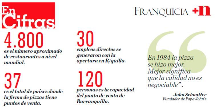 Para los voceros de Papa John’s en Colombia, el mercado nacional y, específicamente el de Barranquilla, es uno de los más competidos por su riqueza y variedad gastronómica. 'Desde el momento en que se contempló la llegada de la franquicia a Colombia, ya se había identificado que el mercado colombiano de pizza estaba preparado para recibir marcas como Papa John’s.