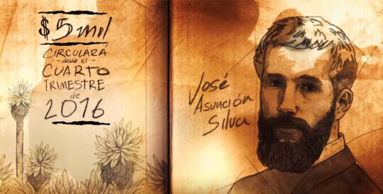 El billete de $5 mil, al igual que el actual, destaca la vida y obra del poeta José Asunción Silva.