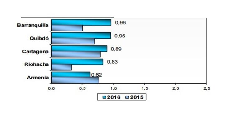 Cartagena, Riohacha y Barranquilla fueron las tres ciudades de la Costa Caribe que menos variaciones presentaron, junto a Armenia (Quindío), y Quibdó (Chocó).
