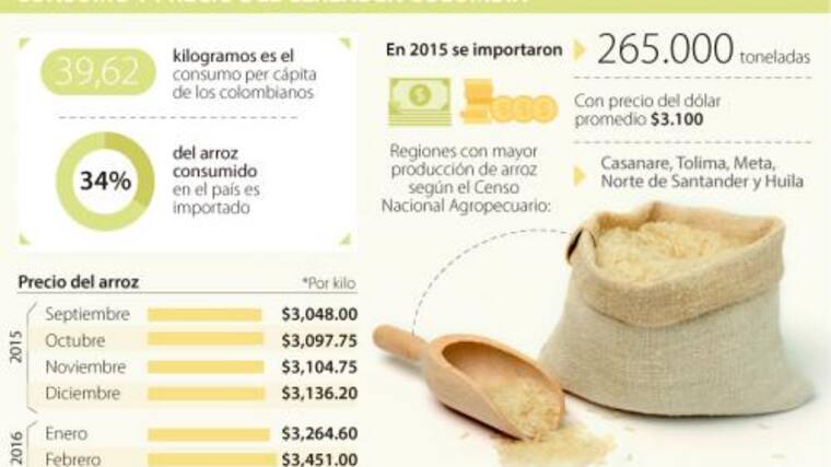 También, hay otros factores de orden coyuntural. Uno es que las industrias en 2015, para poder cubrir el déficit de cerca de 200.000 toneladas de arroz blanco, tuvieron que importar de diferentes países, al no tener la autorización del Ministerio de Agricultura de hacerlo por medio de la Comunidad Andina, lo cual generaría unos altos aranceles.
