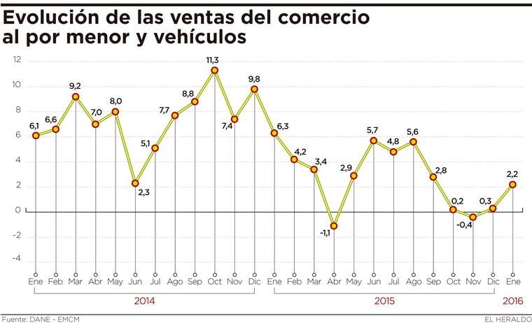 En enero, las ventas del comercio minorista crecieron 2,2% anual, y 2,8% sin incluir las ventas de vehículos, que disminuyeron.