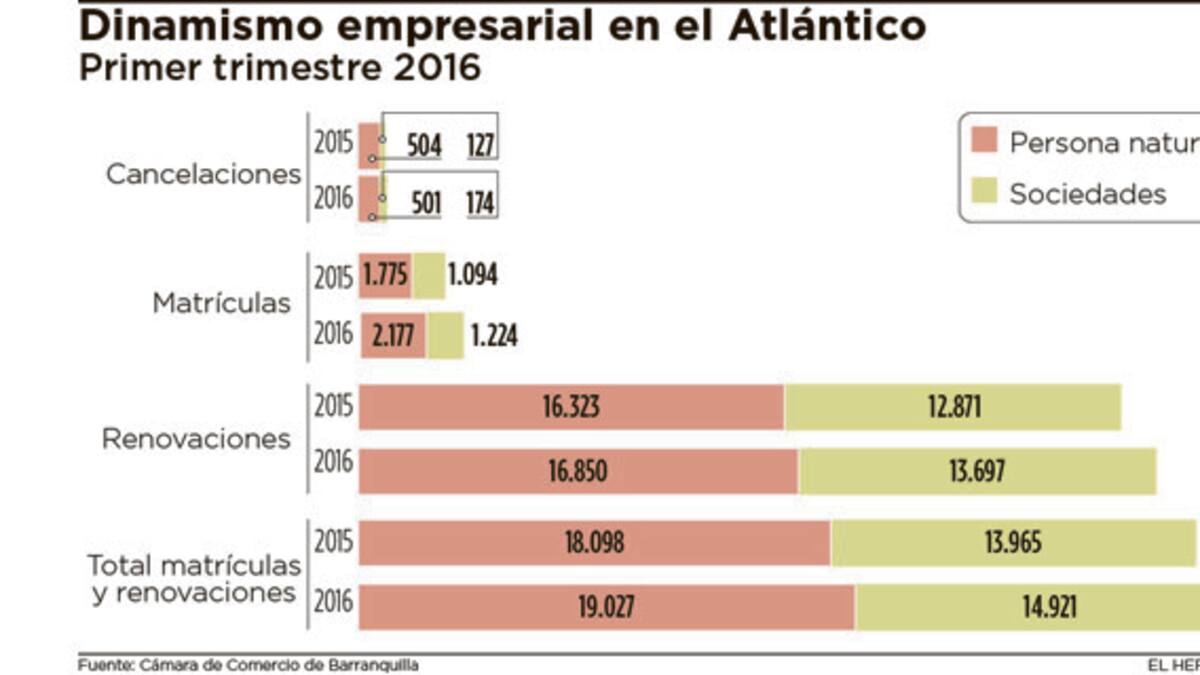 La presidenta de la Cámara de Comercio María José Vengoechea, dijo que el número total de matriculados y renovados en Atlántico fue 33.949, cifra que representa un incremento de 5,9% en comparación con el primer trimestre de 2015.