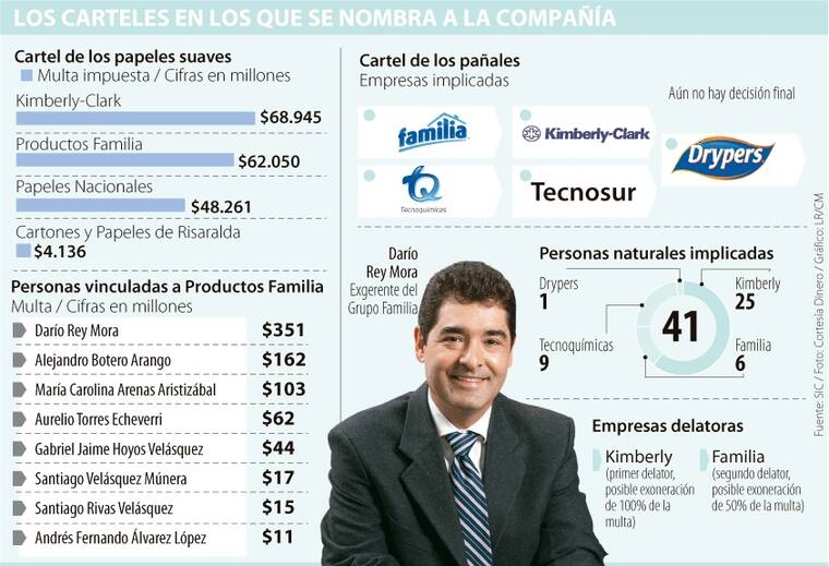 'Como resultado de las investigaciones de la SIC en Colombia en los mercados de papeles suaves y pañales para bebé, la junta directiva de Grupo Familia comunica la decisión del retiro de Darío Rey Mora como gerente general y de Alejandro Botero Arango como gerente de negocios', anunció la compañía.