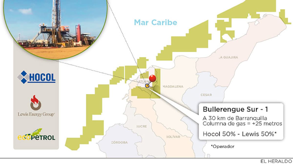 Hocol, compañía filial de Ecopetrol, confirmó el hallazgo de gas natural en el pozo Bullerengue Sur- 1, ubicado a 30 kilómetros de Barranquilla, cerca a Sabanalarga, en Atlántico. Este es el primer pozo de gas que operaría en el Departamento.