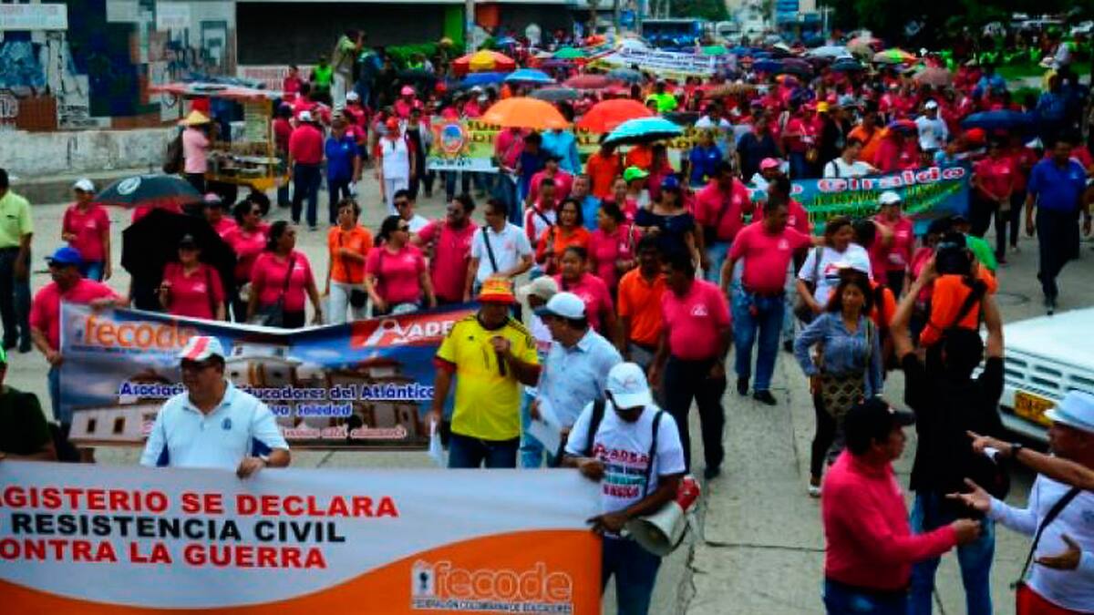 En Colombia, según datos del DANE (2015), trabajan aproximadamente 440 mil profesores, de los cuales cerca de 305 mil lo hacen en el sector oficial. Desde el 11 de mayo, este grupo se encuentra en un paro general que busca presionar el cumplimiento del pliego de 30 peticiones que la Federación Colombiana de Educadores (Fecode) presentó ante el Ministerio de Educación.