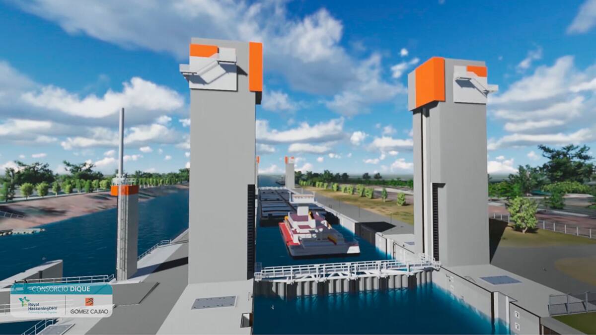 Entre las características de la obra se destacan la construcción de una infraestructura hidráulica para controlar la entrada de agua del río al Canal del Dique, con una esclusa que permitirá el ingreso de convoyes con carga.