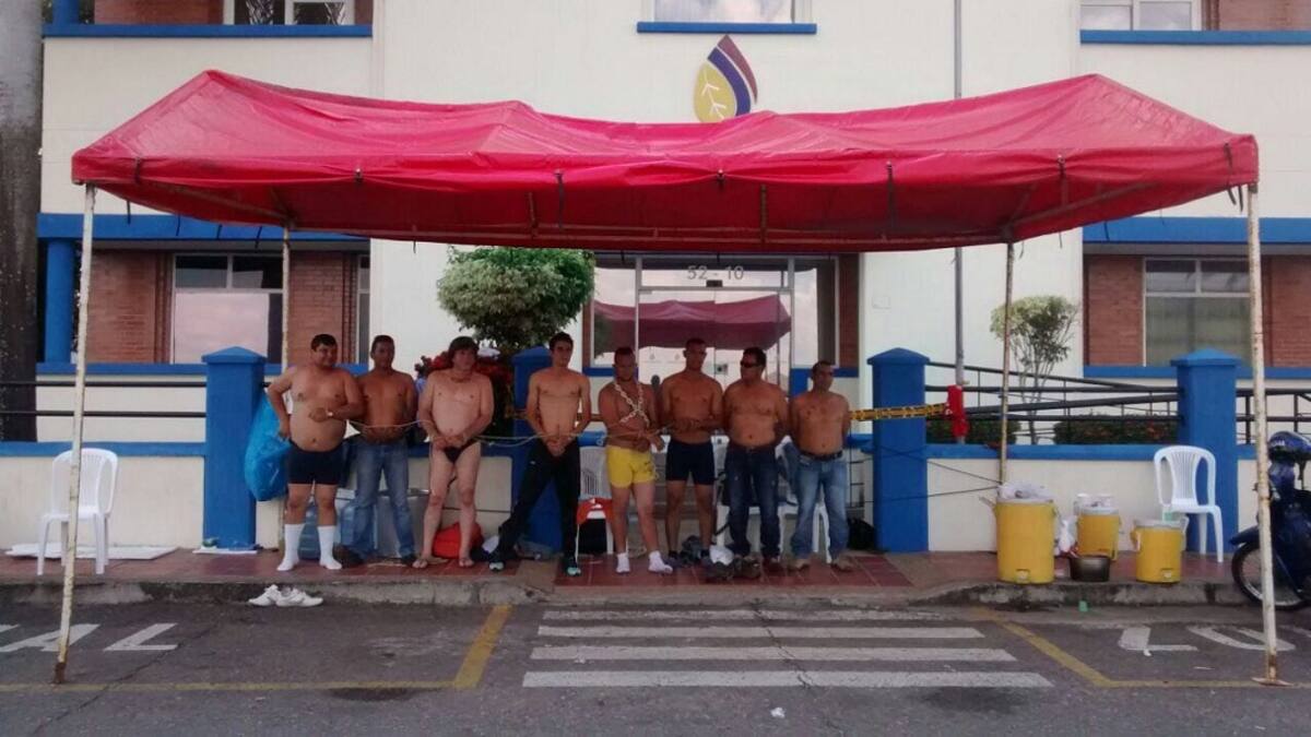 Los trabajadores de Navelena, que mantienen una protesta frente a las oficinas de Cormagdalena en Barrancabermeja desde hace cinco días, tomaron la decisión de quitarse la ropa para reclamar el cumplimiento del acuerdo firmado con la empresa que la comprometía a pagar las obligaciones laborales antes del 20 de junio.