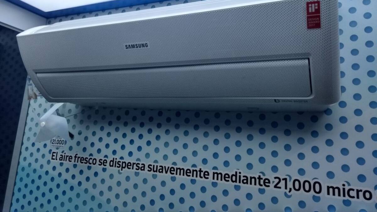 Samsung realizó el lanzamiento oficial este viernes del nuevo aire acondicionado Wind-Free, el cual tiene como plus la dispersión del aire de una manera más fluida y 'refrescante' gracias a los 21.000 microagujeros de la parte frontal de su diseño.