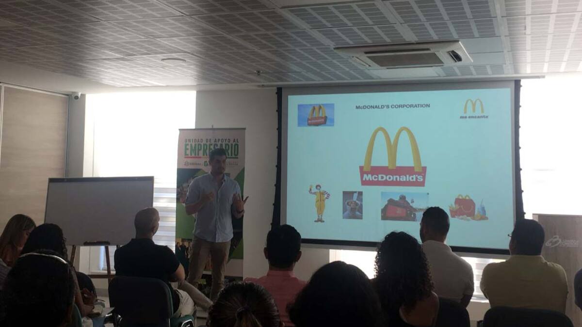 Fredy Sánchez Merino de Macondolab y asesor de la Unidad de Apoyo al Empresario hizo un análisis del carácter genérico de las marcas y de cómo este impide su acceso al registro, en desarrollo del taller '¿Cómo crear marcas que vendan?'.