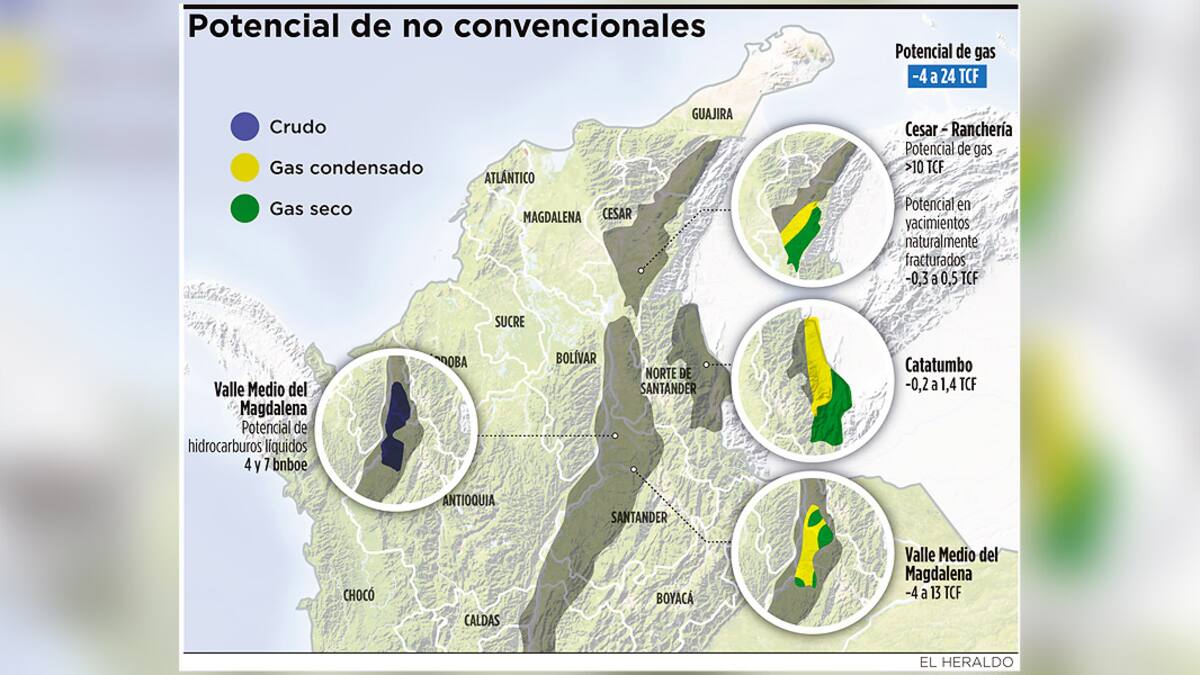 Con el potencial de otras cuencas como Catatumbo y el Valle Medio del Magdalena, las reservas subirían a 24 tcf, lo que las elevaría a 60 o 70 años. En Estados Unidos las reservas de gas son de los 150 años.