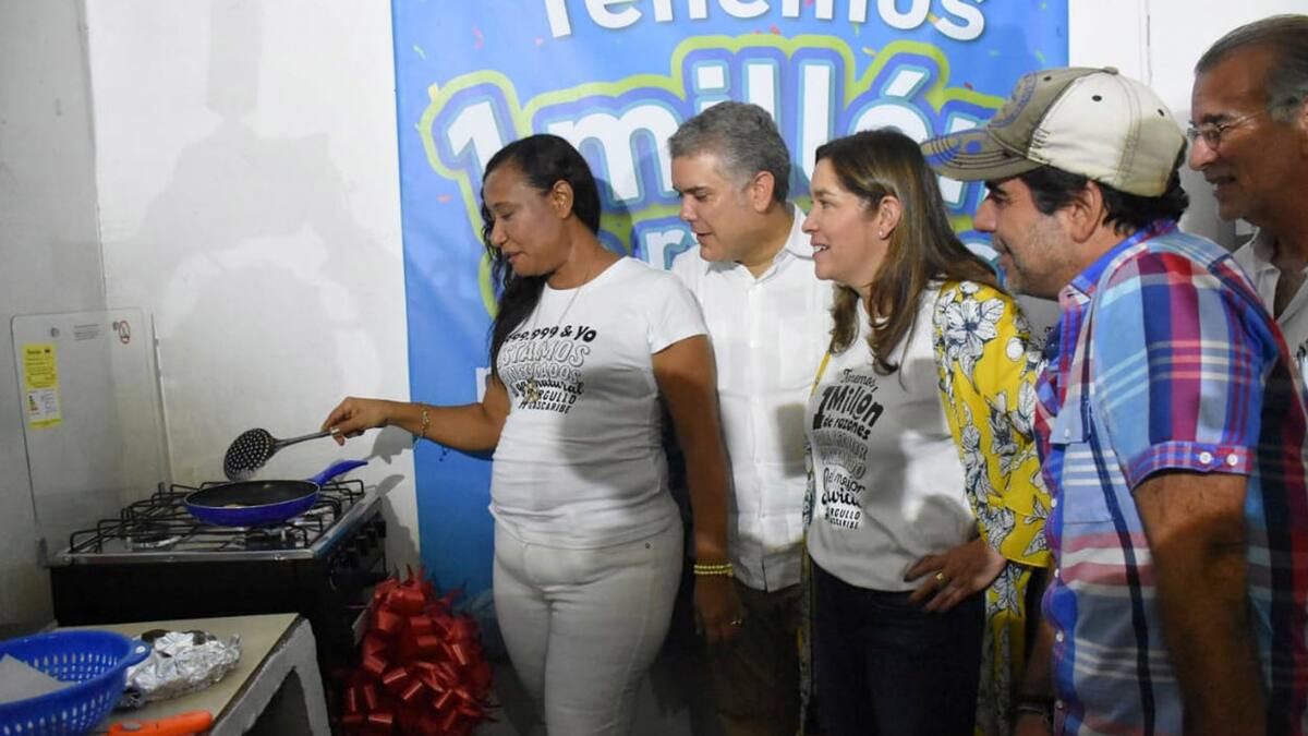 Duque asistió ayer al acto protocolario del encendido de la estufa del usuario número un millón de la compañía Gases del Caribe, en la casa de Emperatriz Morales. Ella y su familia pasaron de usar estufa eléctrica a recibir el servicio de gas natural domiciliario.