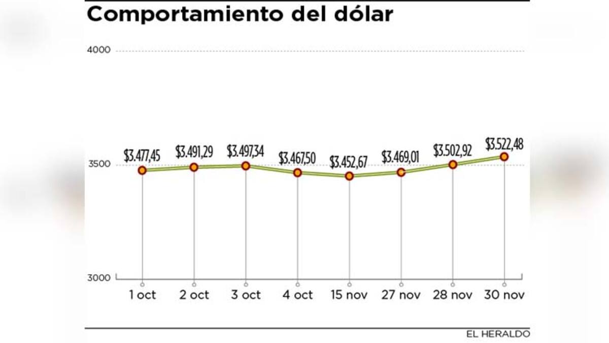 La divisa estadounidense alcanzó ayer un precio promedio de $3.522.56 y el pasado 28 de noviembre había llegado a los $3.502,92.