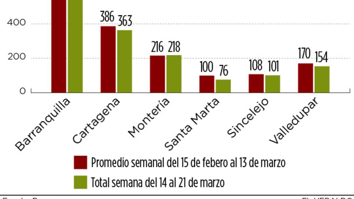 En este periodo las plazas de mercado en Barranquilla recibieron 796 vehículos duplicando el movimiento de Cartagena que fue de 363, y le siguieron Montería (218), Valledupar (154), Sincelejo (101) y Santa Marta (76).