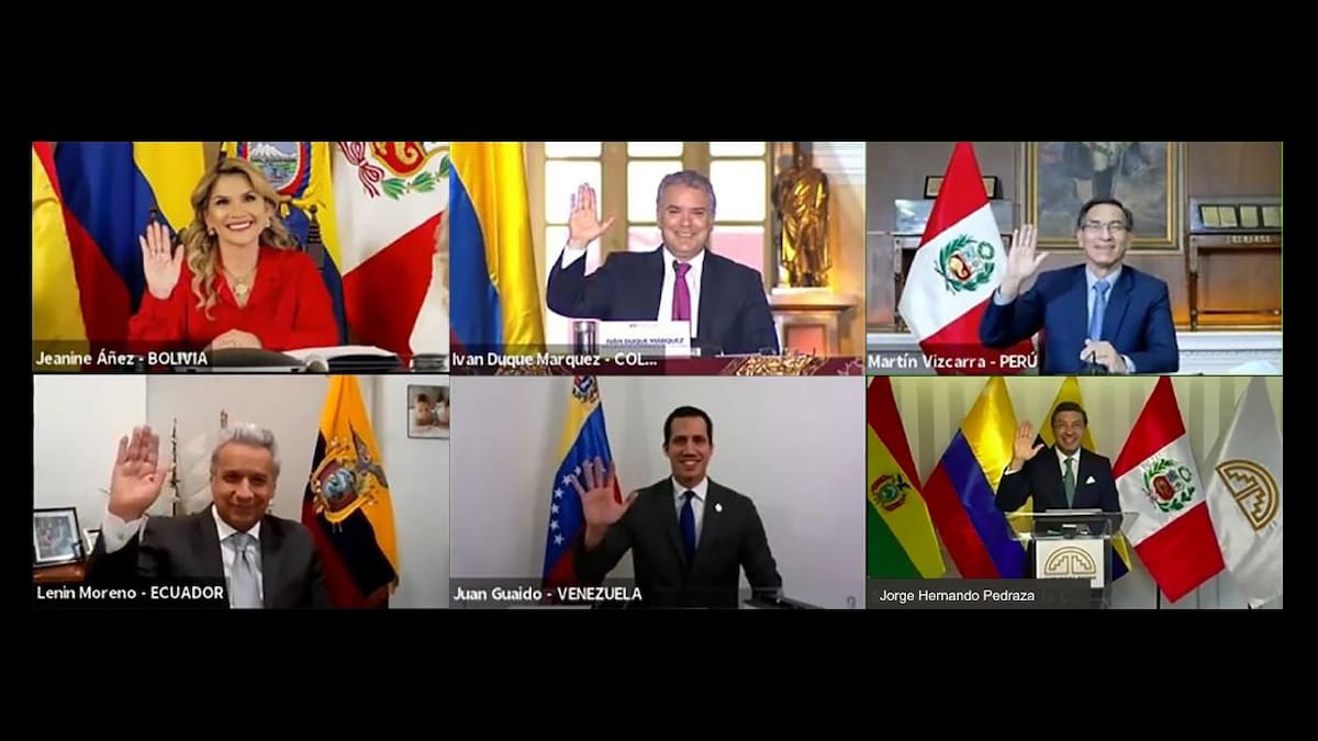 Por su parte, Jeanine Áñez señaló desde La Paz que es la primera vez que el Consejo Presidencial Andino se celebra por videoconferencia, debido a la pandemia de la COVID-19.