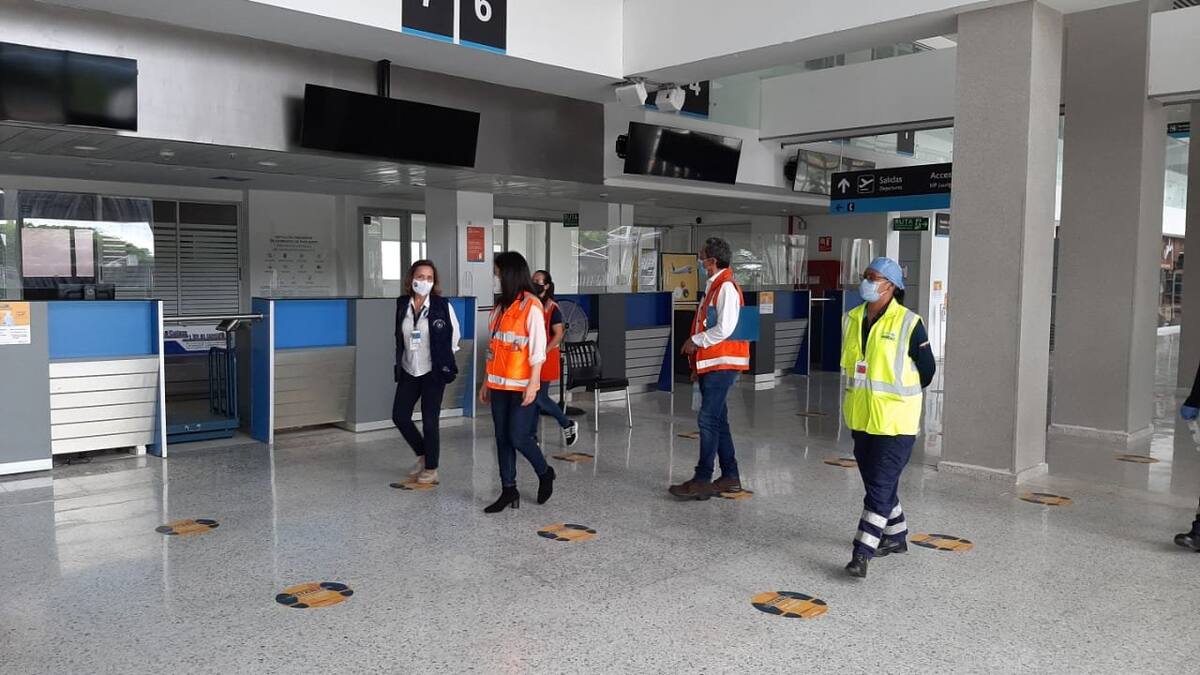 En su recorrido por el aeropuerto Alfonso Bonilla Aragón de Palmira, la institución también observó un cumplimiento superior al 95% y resaltó un mayor número de lavaderos portátiles en todos los ingresos a la terminal aérea y la utilización de prendas anti fluido y caretas protectoras por parte del personal de seguridad como medidas adicionales.