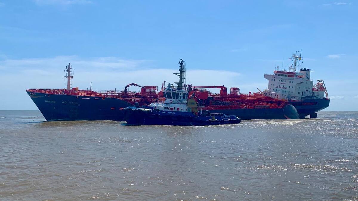 La Dirección General Marítima (DIMAR) en coordinación con las demás autoridades del Puerto de Barranquilla, verifican las actividades marítimas y fluviales que se desarrollan dentro del plan de salvamento para desencallar la motonave Nordic Wolverine a la altura de Bocas de Ceniza.