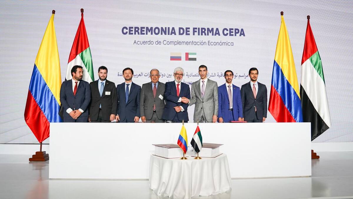 Los ministros de Comercio de Colombia, Germán Umaña Mendoza, y de Estado para el Comercio Exterior de los Emiratos Árabes Unidos, Thani bin Ahmed Al Zeyoudi, firmaron el Acuerdo Integral de Asociación Económica (CEPA, por sus siglas en inglés), que negociaron durante dos años, entre noviembre del 2021 y diciembre del 2023.