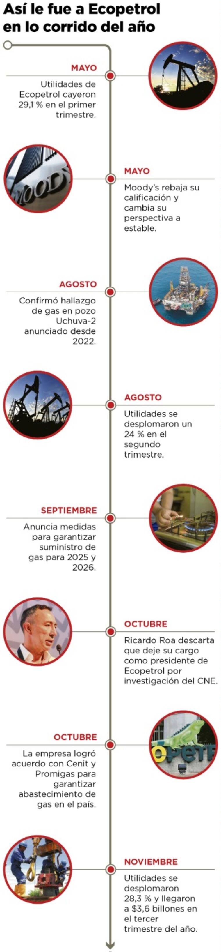 A eso se le suma otro factor: los escándalos que ha afrontado el presidente de la petrolera, Ricardo Roa, por la presunta violación de topes de financiación durante la campaña electoral, cuando era el gerente de la campaña del presidente Gustavo Petro. Esto abrió de nuevo la polémica sobre qué tanto se afectaría el futuro de esta compañía, la más importante del país.