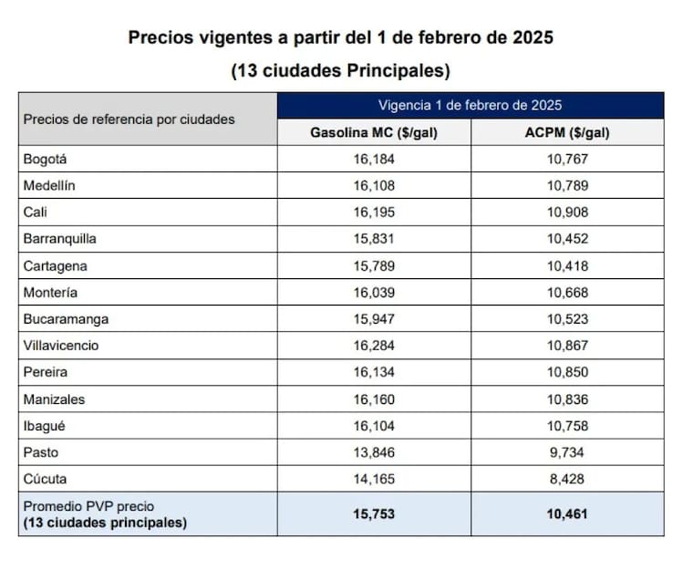 De esta manera, en promedio el galón de gasolina quedaría en $15.753 y el del ACPM en $10.461.