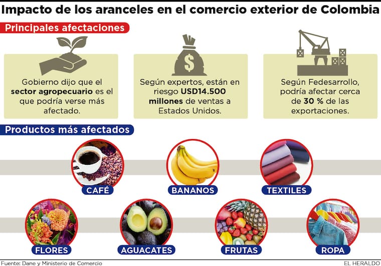 De acuerdo con la Asociación Nacional de Comercio Exterior (Analdex), Estados Unidos es el principal socio comercial de Colombia, alcanzando unas compras en el 2024 por un valor de USD18.433,6 millones, absorbiendo aproximadamente el 30 % de sus exportaciones, uno de los sectores más afectados es el agrícola con productos como café, flores, frutas y legumbres, que han mostrado crecimiento significativo en los últimos años.
