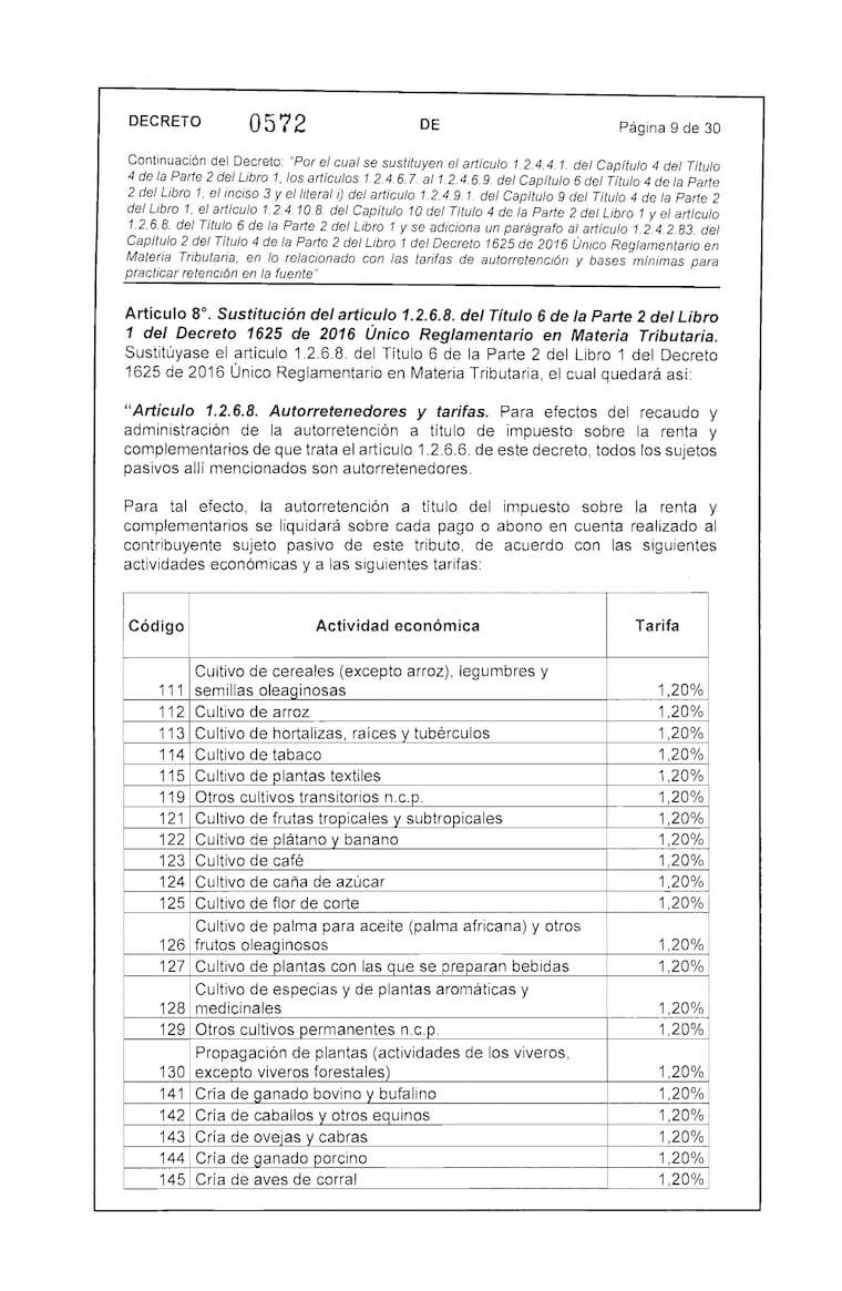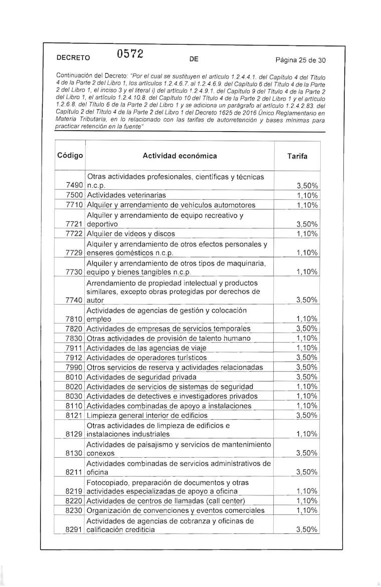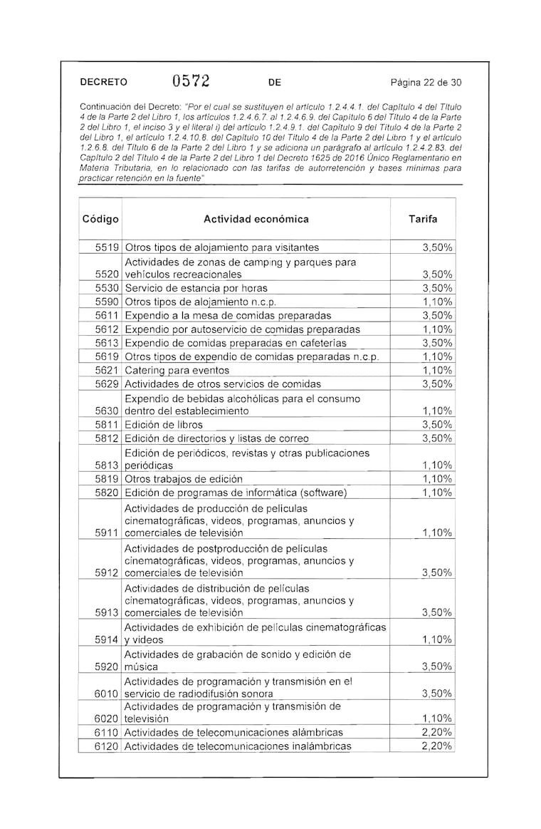 Lista de sectores afectados por aumento de tarifas de retención en la fuente