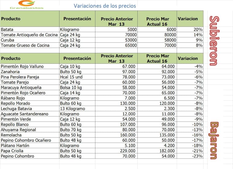 Si usted tiene pensado mercar esta semana, hay buenas noticias para su bolsillo, puesto que unos 18 productos básicos de la canasta familiar en Granabastos han bajado de precio entre el 4 % y el 23 %.