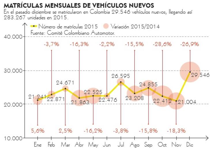 La última razón, Visbal la revalida con la cifra de automotores que fueron matriculados en diciembre de 2014, temporada en la que se hizo la feria automotriz de la capital, que llegó a alrededor de 40 mil unidades. En diciembre de 2015 se llegó a 29 mil.